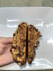 sabor vainilla y cacao con chips de chocolate blanco, rellena de ganache de creamcheese.